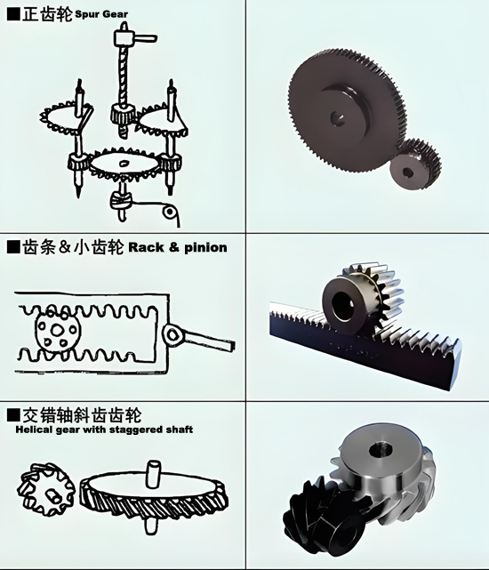 1) Parallel shaft gears: These include spur gears, helical gears, internal gears, racks, and helical racks.