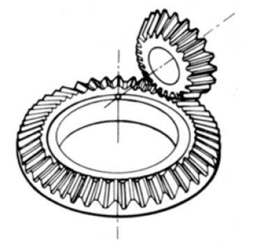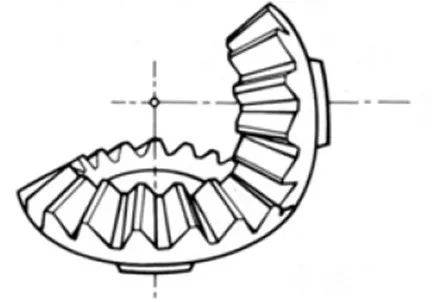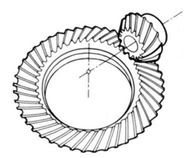 A bevel gear with a spiral angle of zero degrees. It combines characteristics of both straight and spiral bevel gears, with the tooth surface stress conditions similar to those of straight bevel gears.
