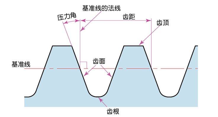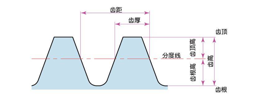 The module (m), pressure angle (α), and the number of teeth (z) are the three fundamental parameters of a gear, and these parameters are used as the basis for calculating the dimensions of various parts of the gear.
