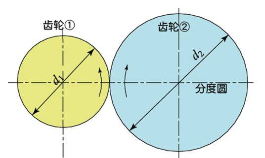 When two gears mesh, it visually appears as if the gears are friction wheels with diameters 𝑑1 and 𝑑2 in contact and transmitting motion. However, the meshing of involute gears actually depends on the base circles rather than the pitch circles.