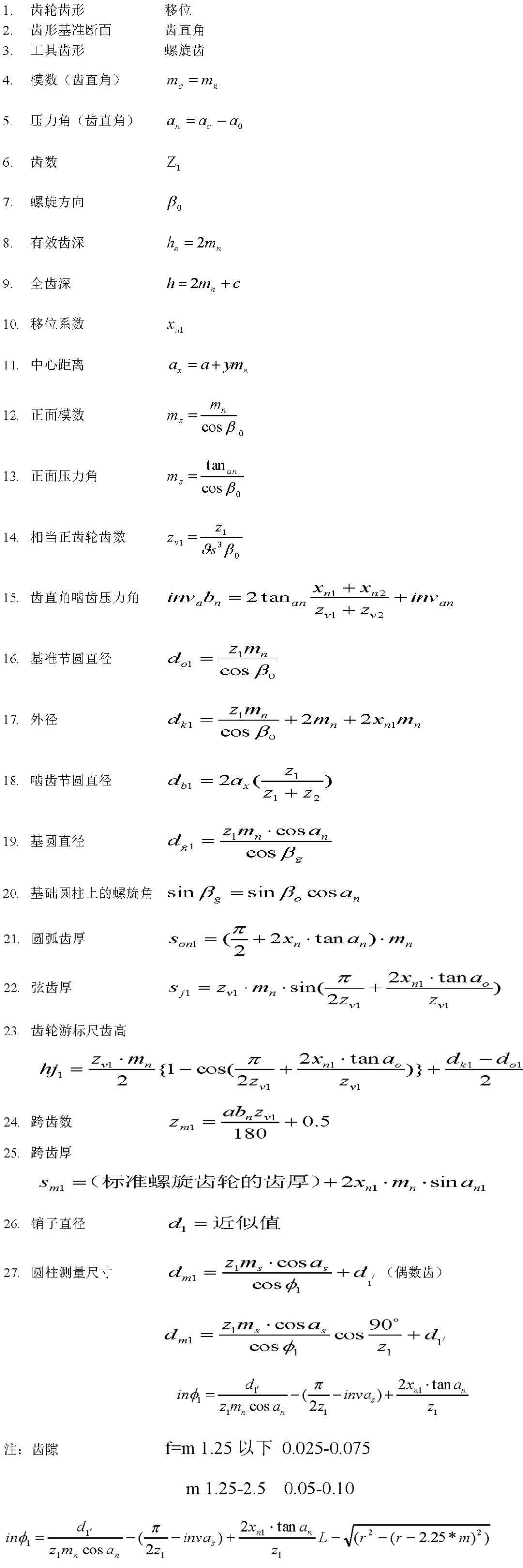 Calculation Formulas for Standard Helical Gears (Normal Plane Method) (Small Gear ①, Large Gear ②)